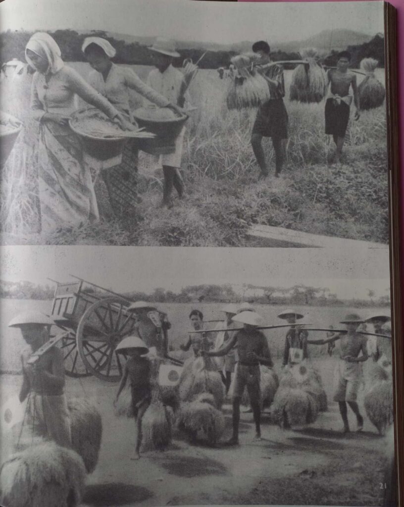 Under the slogan of ‘Multiply Food Production’, the Japanese government imposed food policies on various levels. Since their arrival in 1942, Japan had introduced new seeds, invented a new irrigation system, sent Japanese experts to villages to demonstrate new techniques, and enforced tight regulations to plant specific seeds.