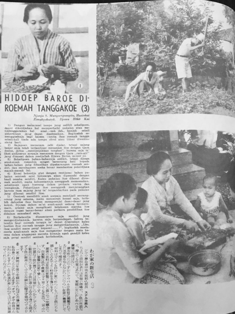 VI. A propaganda for women to tend household farms. Source: Djawa Baroe, 11th Edition, year 2605 (1945).