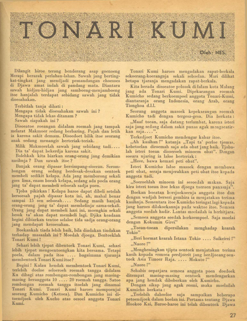 IV. A short story about Tonari Gumi, which was later adapted as a film by Nippon Eiga Sha. Source: Djawa Baroe, 9th Edition, year 2604 (1944).