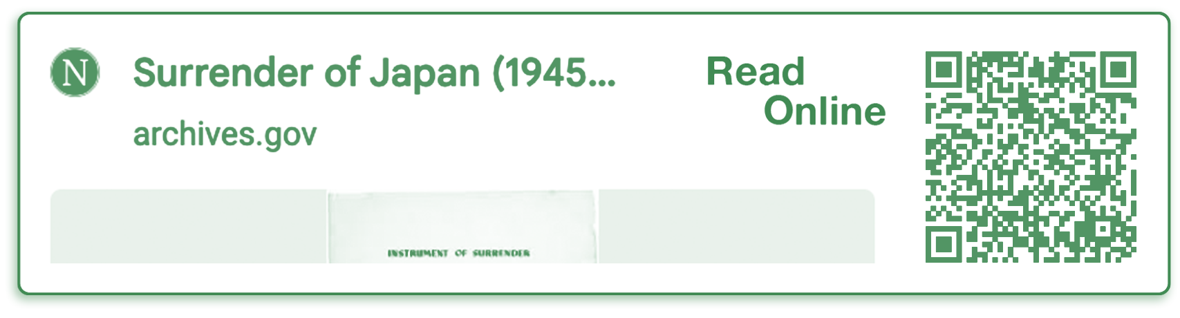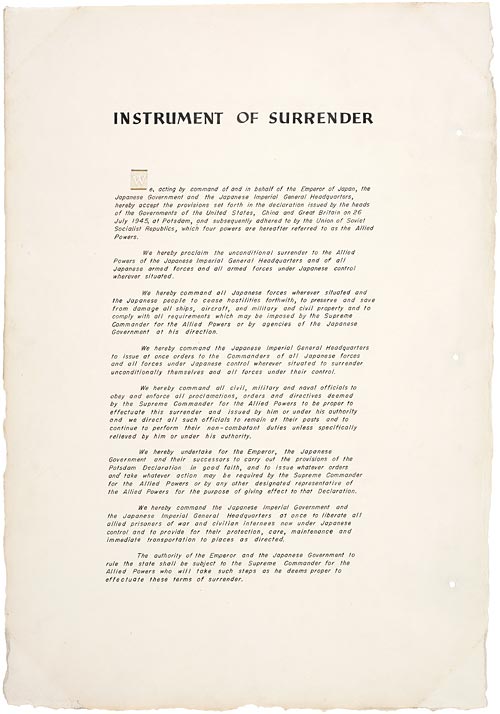 Citation: Instrument of Surrender; September 2, 1945; Records of the U.S. Joint Chiefs of Staff; Record Group 218; National Archives.